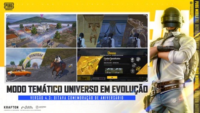 Obra-prima épica do Battle Royale Vários eventos para você explorar Chegue ao topo no PUBG MOBILE e largue o dedo no gatilho. PUBG MOBILE é o Battle Royale original no celular, além de um dos melhores jogos de tiro. Batalhas extremas em partidas de 10 minutos Prepare suas armas de fogo, responda ao chamado da batalha em PUBG MOBILE e largue o dedo no gatilho. Mapas e modos aos montes PUBG MOBILE conta com vários mapas e mecânicas de jogabilidade que oferecem a você uma experiência de sobrevivência emocionante. Encontre seus amigos e jogue os novos modos com eles! Jogue como quiser e largue o dedo no gatilho! Jogue onde e quando quiser Relaxe e jogue PUBG MOBILE o quanto quiser! Desfrute da jogabilidade de tiro mais suave para uma experiência de jogo incomparável. Feito especialmente para telefones celulares Controles personalizáveis, modo de treinamento e bate-papo por voz com amigos. Experimente a experiência de controle mais suave e as armas de fogo mais realistas no seu celular. PUBG MOBILE tem os itens e a experiência de jogo mais fidedignos. É um jogo que pode realizar qualquer desejo que você possa ter. Escolha entre inúmeras armas de fogo e teste sua pontaria. Novos itens, mapas e modos são constantemente adicionados ao jogo. PUBG MOBILE oferece as batalhas multijogador gratuitas mais intensas no seu celular. Junte-se à batalha, coloque seu equipamento e jogue para vencer. Sobreviva em batalhas épicas para 100 jogadores no Modo Clássico, no Modo Payload, em aceleradas batalhas de Arena 4v4 e no Modo Contaminação. A sobrevivência é tudo o que importa. Sobreviva até ao fim para conseguir a última risada. Aceite missões e largue o dedo no gatilho! Modelos Compatíveis: todos os modelos com um chip Apple A8 como requisito mínimo (iPhone 6 ou mais recente, iPad Air 2 ou mais recente, iPad mini 4 ou mais recente, iPod Touch 6 ou mais recente e todos os modelos iPad Pro). Modelos Incompatíveis: todos os modelos usando um chip Apple A7 ou anterior (iPhone 5s ou anterior, iPad Air ou anterior, iPad Mini 3 ou anterior, iPod Touch 5 ou antigo). Siga a gente: Instagram: https://www.instagram.com/pubgmobile Facebook: https://www.facebook.com/PUBGMOBILE Twitter: https://twitter.com/PUBGMobile Youtube: https://www.youtube.com/pubgmobile Tiktok: https://www.tiktok.com/@pubgmobile Reddit: https://www.reddit.com/r/PUBGMobile/ Discord: https://discord.gg/pubgmobile Entre em contato com o atendimento ao cliente se tiver algum problema: service@pubgmobile.com Leia a política de privacidade e o acordo de usuário de PUBG MOBILE Política de Privacidade: http://pubgmobile.proximabeta.com/privacy.html Acordo de Usuário da Tencent Games: https://www.pubgmobile.com/terms.html