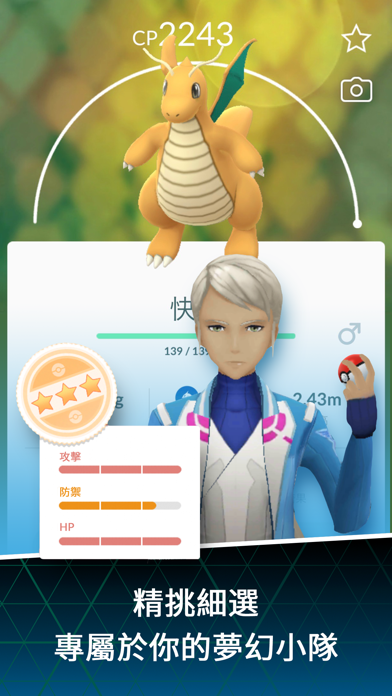 加入世界各地訓練家的行列,一起探索周遭世界並尋找寶可夢吧。Pokémon GO是一款風靡全球的遊戲,下載次數超過10億次,榮獲Game Developers Choice Awards「最佳手機遊戲」獎,並獲選TechCrunch網站「年度最佳應用程式」。 _______________ 隨時隨地探索寶可夢的世界! 捕捉更多的寶可夢,填滿寶可夢圖鑑! 和你的夥伴寶可夢一起踏上冒險之旅,讓你的寶可夢變得更強大並獲得更多獎勵! 在道館對戰中一較高下,或是…… 和其他訓練家在團體戰中聯手捕捉強大的寶可夢! Let’s GO! 只要在「健康」app 中的隱私權設定中允許Pokémon GO讀取資料,「時時刻刻模式」就能在關上應用程式持續計算步行距離。 注意事項: 本遊戲為免費遊玩並提供應用程式中內購功能。欲獲得最佳遊戲體驗,請使用智慧型手機遊玩。 建議在安定的網路環境中遊玩,以取得精確的位置資訊。 我們無法保證本應用程式可在未搭載GPS機能,或是只能以Wi-Fi連線的裝置上正常運作。 今後進行更新時,系統需求及對應裝置可能有所變動。 本資訊最後更新日為2019年7月11日。 對應裝置:搭載iOS 9或以上版本作業系統的iPhone® 5s / SE / 6 / 6s / 6 Plus / 6s Plus / 7 / 7 Plus / 8 / 8 Plus / X。 本遊戲不支援第五代iPod Touch、iPhone 5c或更舊的裝置。 請至Pokémon GO官方網站確認更多關於對應裝置的資訊。 我們無法保證本應用程式可在平板電腦上正常運作。 我們無法保證本應用程式可在所有裝置上正常運作。 持續在背景執行GPS功能可能會劇烈消耗電池電量。 請注意遊戲時間,避免沉迷。