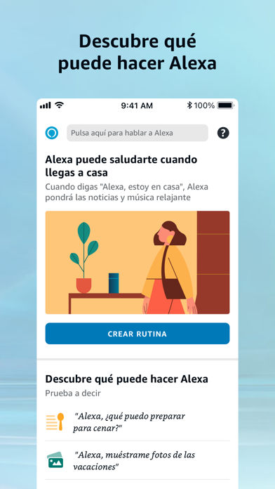 Usa la app Amazon Alexa para gestionar tus dispositivos con Alexa integrada, controlar la reproducción de música, ver tus listas de la compra desde dónde estés, consultar recordatorios pendientes, echar un vistazo a los temporizadores activos y mucho más. Cuando la función manos libres Alexa está activada, puedes hablarle a Alexa simplemente diciendo “Alexa” siempre que la app esté en pantalla. Cuanto más uses Alexa, mejor se adaptará a tu voz, al vocabulario que utilizas y a tus preferencias personales. Gestiona tus dispositivos • Configura los dispositivos con Alexa integrada o controla o verifica el estado de las luces inteligentes, cerraduras y termostatos compatibles, en casa o estés donde estés • Crea rutinas para automatizar tus dispositivos de Hogar digital Música y libros • Conéctate a servicios de música, como Amazon Music. Elige una canción o una playlist y escúchala en tus dispositivos con Alexa integrada • Crea grupos de altavoces para reproducir música en los dispositivos Echo compatibles con la música multiestancia Organiza tu día • Revisa y edita listas de la compra y listas de tareas estés donde estés, recibe el pronóstico del tiempo y las últimas noticias, gestiona temporizadores y alarmas, y mucho más Mantente en contacto • Usa Drop In desde tu app para conectarte al instante con los dispositivos Echo compatibles en casa, como un intercomunicador bidireccional • Llama o envía mensajes a dispositivos con Alexa integrada compatibles Al utilizar esta app, aceptas las Condiciones de Uso y Venta de Amazon (www.amazon.es/conditionsofuse) y todos los términos disponibles aquí (https://www.amazon.es/alexa/alexadeviceterms). Consulta nuestro Aviso de Privacidad (www.amazon.es/privacynotice).