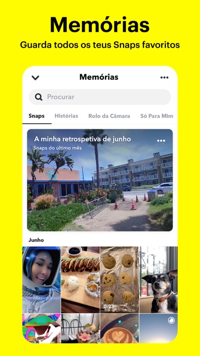 O Snapchat é uma forma rápida e divertida de partilhar um momento com os teus amigos e família SNAP • O Snapchat abre diretamente na câmara – basta tocar para tirares uma foto ou carregar continuamente para gravares um vídeo. • Expressa-te com Lentes, Filtros, Bitmoji e muito mais! • Experimenta Lentes novas criadas diariamente pela comunidade do Snapchat! CHAT • Mantém o contacto com amigos através de mensagens instantâneas ou partilha o teu dia com as Histórias em Grupo. • Faz chat de vídeo com até 16 amigos ao mesmo tempo – até podes usar Lentes e Filtros durante a conversa! • Expressa-te com Friendmojis – Bitmoji criados em exclusivo para ti e um amigo. HISTÓRIAS • Vê as Histórias dos teus amigos para veres o dia a dia deles. • Vê Histórias da comunidade do Snapchat com base nos teus interesses. • Descobre notícias de última hora e programas originais exclusivos. DESTAQUE • O Destaque mostra o melhor do Snapchat! • Envia os teus próprios Snaps ou descontrai e assiste. • Escolhe os teus favoritos e partilha-os com amigos. MAPA • Partilha a tua localização com os teus melhores amigos ou desaparece do mapa com o Modo Fantasma. • Vê o que os teus amigos estão a fazer no teu mapa mais pessoal quando partilham a localização contigo. • Explora as Histórias em direto da comunidade mais próxima ou do mundo inteiro! MEMÓRIAS • Guarda fotos e vídeos ilimitados dos teus momentos favoritos. • Edita e envia velhos momentos a amigos ou guarda-os no teu Rolo da Câmara. • Cria Histórias a partir das tuas Memórias favoritas para partilhar com amigos e família. PERFIL DE AMIZADE • Todas as amizades têm o seu próprio perfil especial para verem os momentos que guardaram juntos. • Descobre coisas novas que têm em comum com as Recordações – vê há quanto tempo são amigos, a vossa compatibilidade astrológica, o estilo dos vossos Bitmoji e muito mais! • Os Perfis de Amizade são só para ti e um amigo, para criarem laços com base no que torna a vossa amizade especial. Diverte-te a fazer Snap! Tem em atenção que os Snapchatters podem sempre registar ou guardar as tuas mensagens ao fazer screenshot, utilizar uma câmara ou com outro método. Cuidado com o que partilhas nos teus Snaps! Para consultares uma descrição completa das nossas práticas de privacidade, visita o nosso Centro de Privacidade.