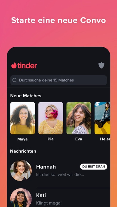 MATCHEN. CHATTEN. DATEN. 30 Milliarden Matches bislang sprechen für sich: Tinder® ist die weltweit beliebteste App, um neue Leute kennenzulernen. Ganz gleich, ob du neue Leute treffen, dein soziales Umfeld erweitern, auf Reisen locals kennenlernen oder einfach im Hier und Jetzt leben möchtest – hier bist du genau richtig! Wir gelten nicht umsonst als die heißeste App der Welt: Bei 26 Millionen Matches täglich knistert es bei uns praktisch pausenlos. Und von wie vielen anderen Dating-Apps kann man das schon behaupten? WIE TINDER FUNKTIONIERT Tindern ist einfach und macht Spaß – ein Swipe nach rechts ist ein Like, ein Swipe nach links ein Nope. Wenn du der anderen Person auch gefällst, It's a Match! Bei Tinder müssen beide Interesse zeigen: Erst wenn zwei Personen sich gegenseitig liken, ist es ein Match. Kein Stress. Keine Abfuhr. Einfach durch die Profile tippen, die dich interessieren, und online mit deinen Matches chatten. Und jetzt fang einfach an. Aber denk dran: im Zweifel lieber nach rechts swipen. Vertrau uns! Je mehr Optionen du hast, desto besser werden deine Aussichten. MEHR FEATURES? DAS IST EIN GROSSES PLUS Ein Upgrade auf Tinder Plus® bringt dir jede Menge Premium-Features, darunter: unbegrenzte Likes, damit du so viel nach rechts swipen kannst, wie du willst, Passport für Kontakte auf der ganzen Welt, Swipes zurücknehmen, um jemandem eine zweite Chance zu geben, ein Gratis-Boost pro Monat, mit dem du 30 Minuten das Top-Profil in deiner Umgebung bist, Wöchentliche Super-Likes für Profile, die dir besonders gut gefallen, um richtig herauszustechen HOL DIR DEN GOLD-STANDARD Ein Upgrade auf Tinder Gold™ bietet dir ein wirklich erstklassiges Tinder-Erlebnis: Passport, Swipes zurücknehmen, unbegrenzte Likes, Wöchentliche Super-Likes für Profile, die dir besonders gut gefallen, ein Boost pro Monat und eine größere Kontrolle über dein Profil. Moment! Es wird noch besser: Mit unserem Likes You Feature sparst du Zeit und suchst nicht ziellos in der Gegend rum ,denn du siehst gleich wer dich mag. Betrachte es als deinen persönlichen Tinder Concierge, der dir rund um die Uhr zur Verfügung steht und dir alle deine anstehenden Matches anzeigt. Jetzt kannst du dich entspannt zurücklehnen, ein kühles Getränk genießen und ganz nach Belieben Profile ansehen. ----------------------------------- Beim Kauf von Tinder Plus oder Tinder Gold wird der Betrag von deinem iTunes-Konto abgebucht; 24 Stunden vor Ablauf der aktuellen Laufzeit wird das Konto für eine Verlängerung belastet. Nach einem Kauf kann die automatische Verlängerung über die Einstellungen im iTunes Store jederzeit abbestellt werden. Tinder Plus Abos sind momentan ab 9,99 US$ pro Monat erhältlich, mit Laufzeiten von einem, sechs und zwölf Monaten. Tinder Gold Abos sind momentan ab 14,99 US$ pro Monat erhältlich, mit Laufzeiten von einem, sechs und zwölf Monaten. Die Preisangaben sind in US$, können in Ländern außerhalb der USA abweichen, und Preisänderungen ohne vorherige Ankündigung sind vorbehalten. Während der aktiven Abo-Laufzeit kann das aktuelle Abo nicht abbestellt werden. Wenn du dich nicht zum Kauf von Tinder Plus oder Tinder Gold entscheidest, kannst du Tinder ganz normal gratis weiter nutzen.